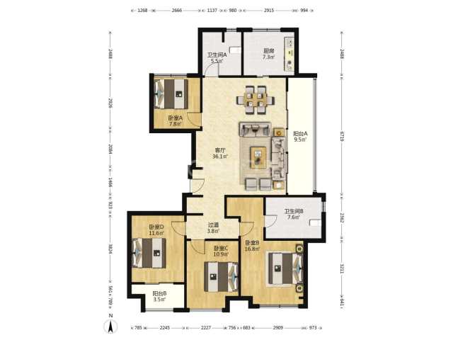 万科大家九都会 4室2厅2卫 139m² 329万